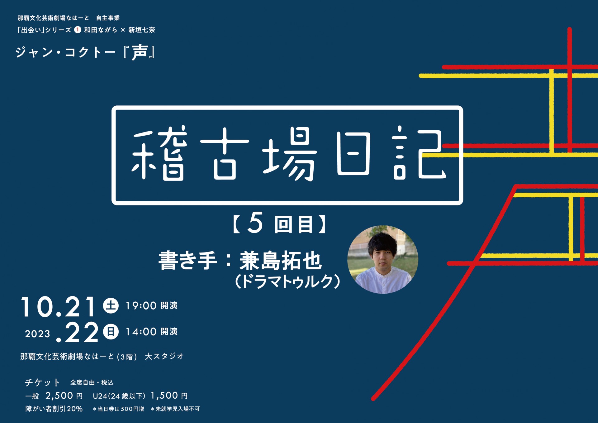 なはーとが今年度から取り組む「出会い」シリーズ。 違う地域のアーティストたちが沖縄で出会い、作品を創作します。その作品がお客様の前にあらわれるまで、その稽古場では何が起こっているでしょうか!?...